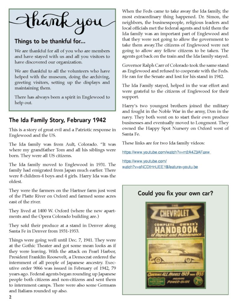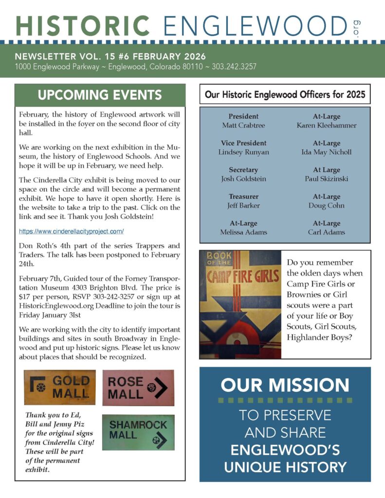 Historic Englewood is currently in the process of transitioning exhibits. During this time, the museum will be closed to the public on Saturdays.
